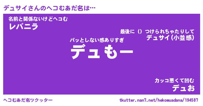 | 意味不明あだ名 | 『ペロリンデュサイ』『永久保存デュサイ』 |