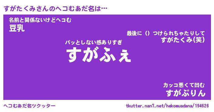 | ファンタジー風あだ名 | 『スガフェル』『エターナルスガタクミー』 |