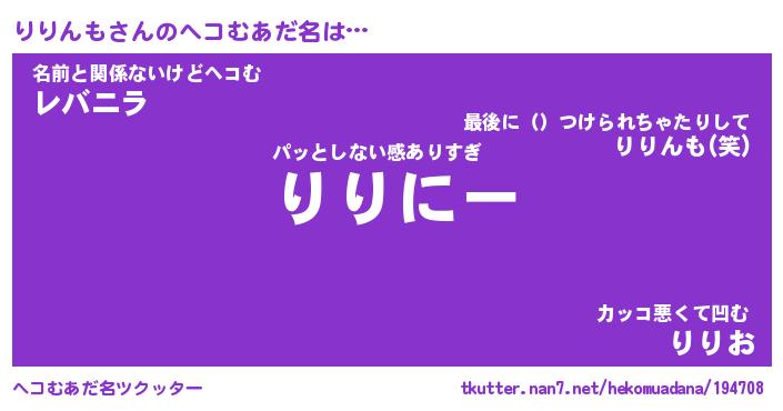 | 意味不明あだ名 | 『ペロリンりりんも』『永久保存りりんも』 |