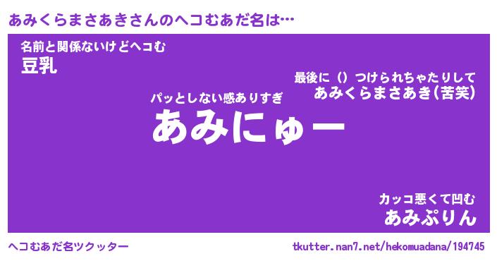 | ヒーロー風カッコイイあだ名 | 『スーパーアミクラマサアキ』 |