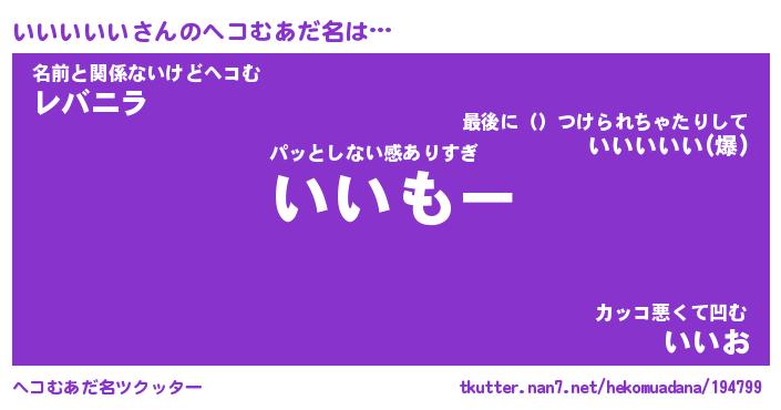 | 2回繰り返すあだ名 | 『いいいい』『いいいい』『いそいそ』 |