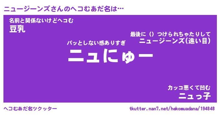 | 男性向けラノベタイトル風あだ名 | 『ニュージーンズの憂鬱』 |