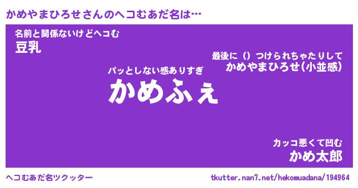 | 恥ずかしいあだ名 | 『プリティーかめやまひろせ』『かめちん』 |