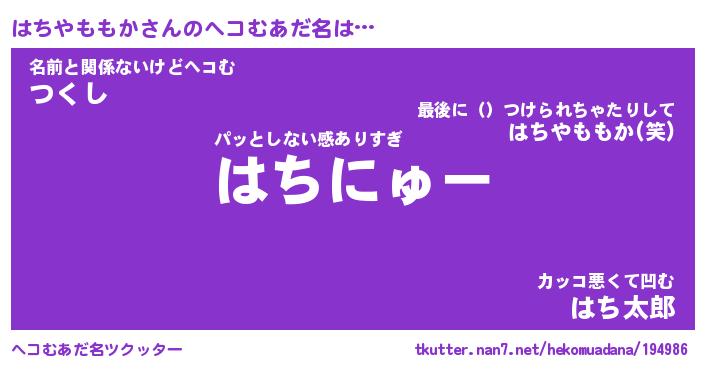 | 意味不明あだ名 | 『ペロリンはちやももか』 |