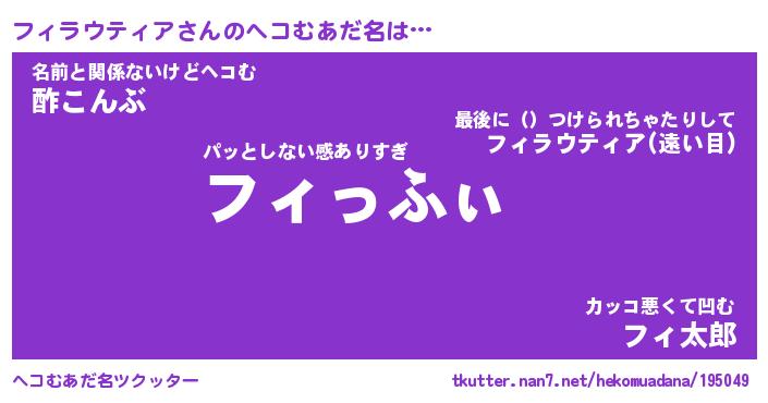 | 男性向けラノベタイトル風あだ名 | 『フィラウティアの憂鬱』 |