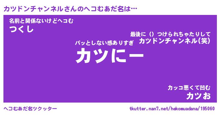 | 意味不明あだ名 | 『ペロリンカツドンチャンネル』 |