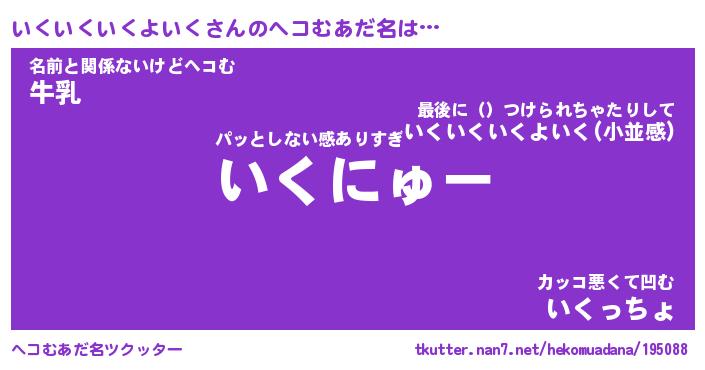 | 男性向けラノベタイトル風あだ名 | 『いくいくいくよいくの憂鬱』 |