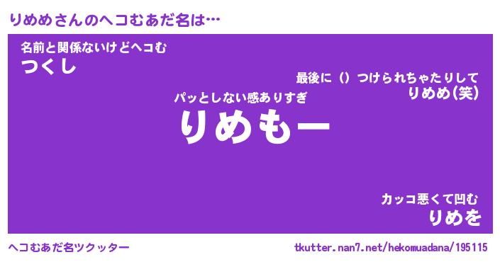 | ポケモン風あだ名 | 『リメチュウ』『リメメダネ』 |