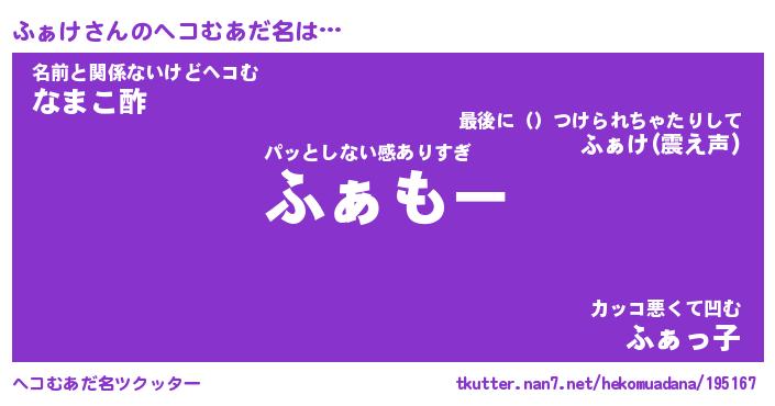 | 2回繰り返すあだ名 | 『ふぁふぁ』『ふふぁぁ』『おたおた』 |