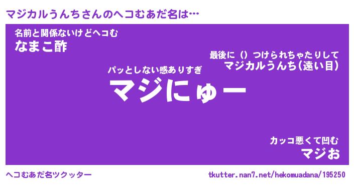 | ピコ太郎風あだ名 | 『マコ史郎』『ピマ十郎』『マジ六郎』 |