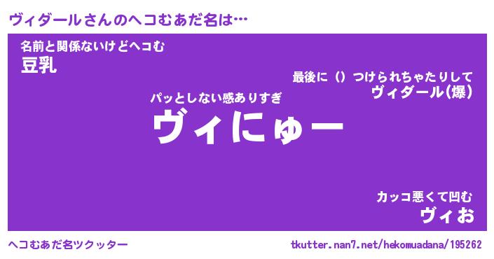 | 男性向けラノベタイトル風あだ名 | 『ヴィダールの憂鬱』 |