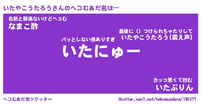 | 意味不明あだ名 | 『ペロリンいたやこうたろう』 |