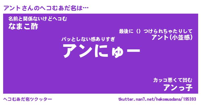 | ポケモン風あだ名 | 『アンチュウ』『アントダネ』 |