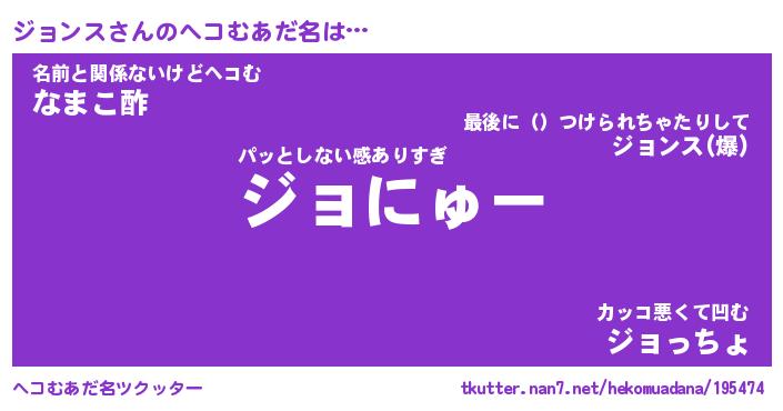 | ポケモン風あだ名 | 『ジョチュウ』『ジョンダネ』 |