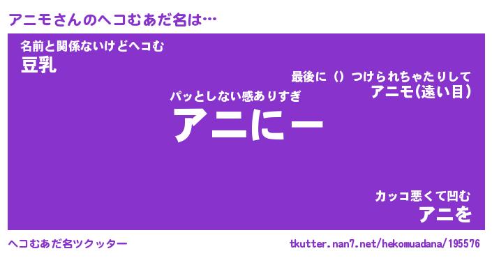 | 男性向けラノベタイトル風あだ名 | 『アニモの憂鬱』 |