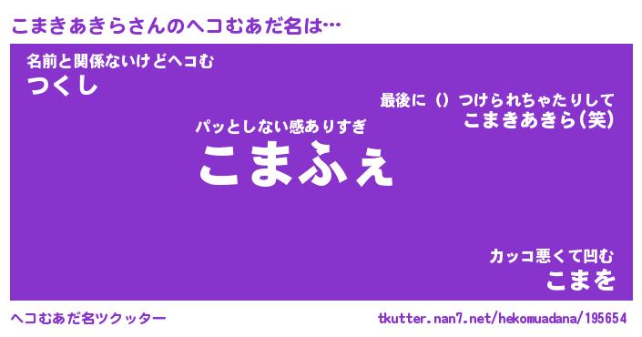 | ファンタジー風あだ名 | 『コマフェル』『ファントムコマス』 |