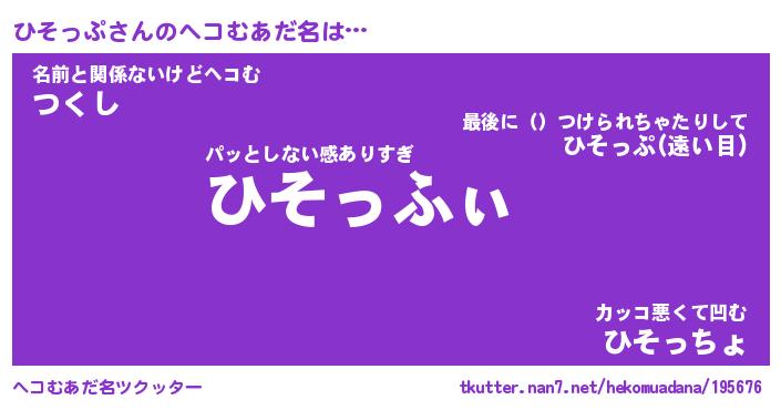 | 意味不明あだ名 | 『ペロリンひそっぷ』『永久保存ひそっぷ』 |