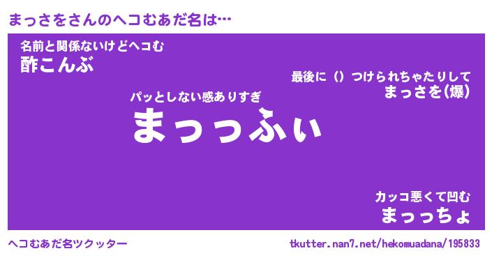 | ファンタジー風あだ名 | 『マッフェル』『エターナルマッサヲー』 |