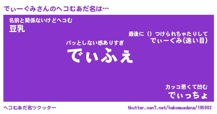 | 男性向けラノベタイトル風あだ名 | 『でぃーぐみの憂鬱』 |