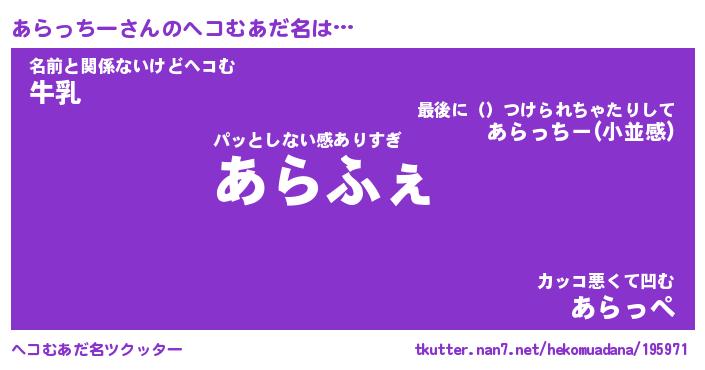 | 意味不明あだ名 | 『ペロリンあらっちー』 |