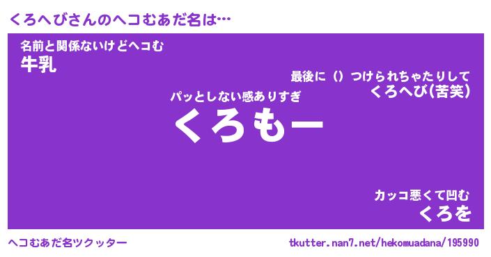 | 意味不明あだ名 | 『ペロリンくろへび』『永久保存くろへび』 |