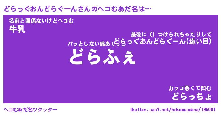 | 意味不明あだ名 | 『ペロリンどらっぐおんどらぐーん』 |