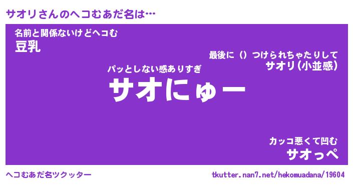 | ポケモン風あだ名 | 『サオチュウ』『サオリダネ』 |