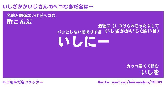 | 男性向けラノベタイトル風あだ名 | 『いしざかかいじの憂鬱』 |