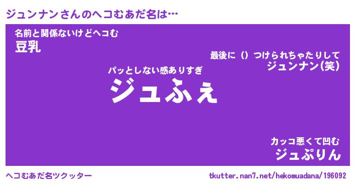 ポケモン風あだ名 | 『ジュチュウ』『ジュンダネ』 |