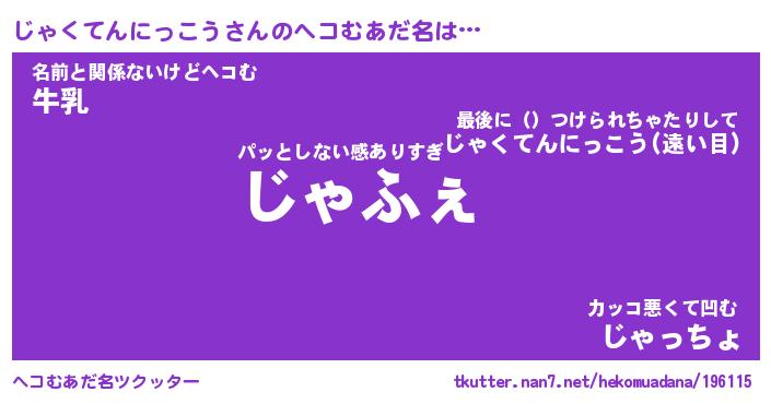 | 男性向けラノベタイトル風あだ名 | 『じゃくてんにっこうの憂鬱』 |