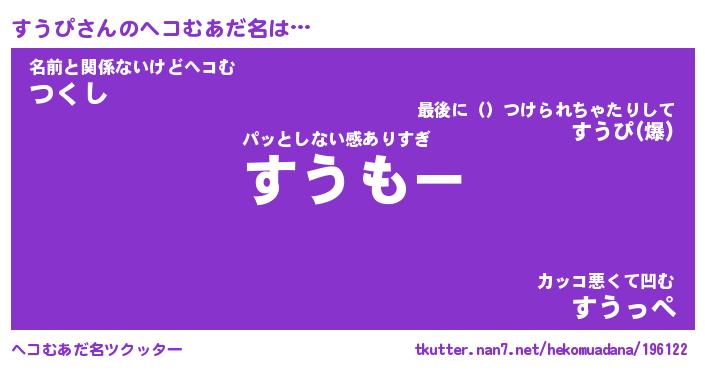 | 意味不明あだ名 | 『ペロリンすうぴ』『すうぴフォーエバー』 |