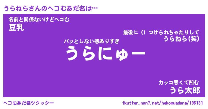 | ヒーロー風カッコイイあだ名 | 『スーパーウラネラ』『暗黒騎士ウラ』 |
