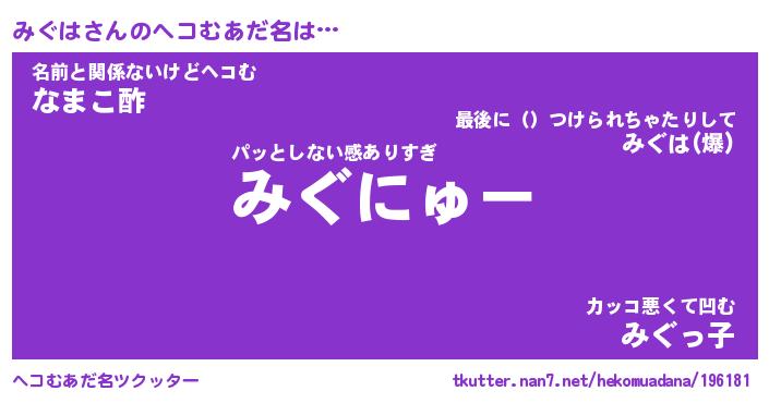 | ヒーロー風カッコイイあだ名 | 『スーパーミグハ』『ウルトラみぐはマン』 |