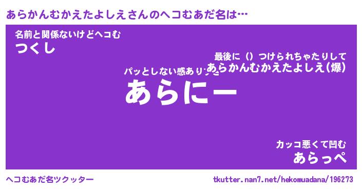 あらかんむかえたよしえさんのヘコむあだ名をツクッター!