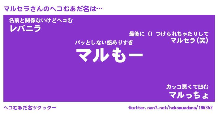 | 意味不明あだ名 | 『ペロリンマルセラ』『永久保存マルセラ』 |
