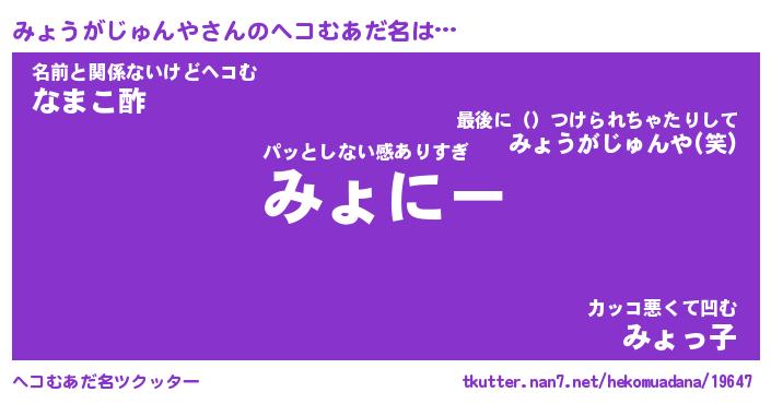 | 恥ずかしいあだ名 | 『プリティーみょうがじゅんや』 |