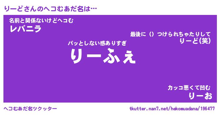 | 意味不明あだ名 | 『ペロリンりーど』『りーどフォーエバー』 |