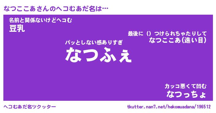 | ファンタジー風あだ名 | 『ナツフェル』『エターナルナツココアー』 |