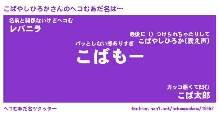 | 意味不明あだ名 | 『ペロリンこばやしひろか』 |