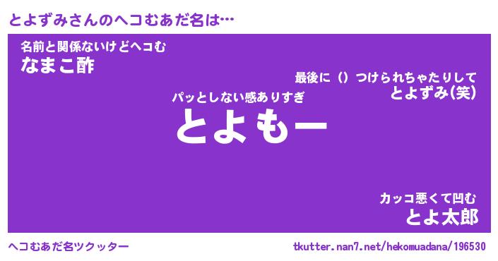 | ファンタジー風あだ名 | 『トヨフェル』『エターナルトヨズミー』 |