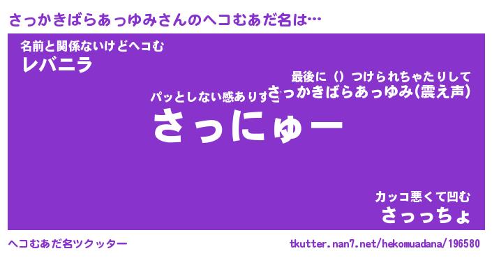 | 胡散臭い通販商品みたいなあだ名 | 『億万長者になれる水晶球…その名も「さっかきばらあっゆみ」』 |