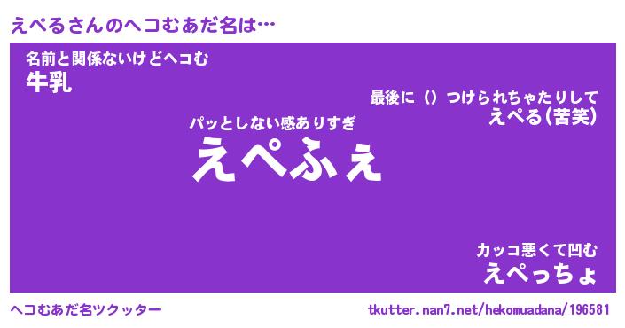 | 2回繰り返すあだ名 | 『えぺえぺ』『ええぺぺ』『うるうる』 |
