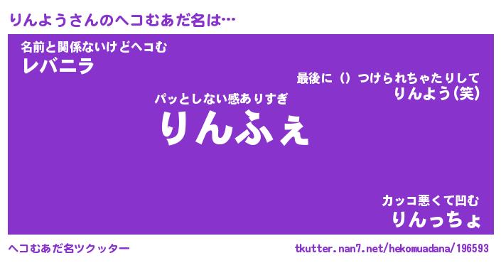 | 男性向けラノベタイトル風あだ名 | 『りんようの憂鬱』 |