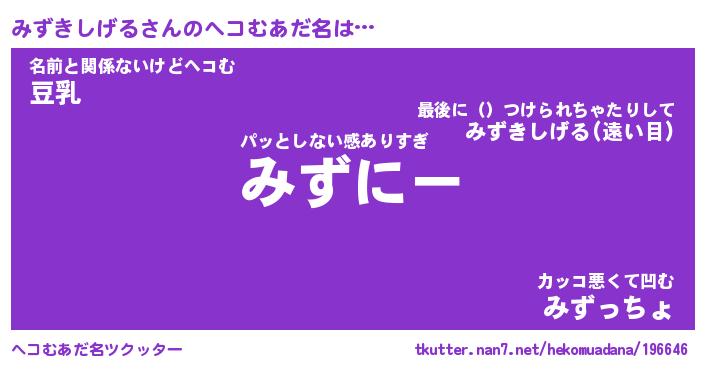| ヒーロー風カッコイイあだ名 | 『スーパーミズキシゲル』『幻影騎士ミズ』 |