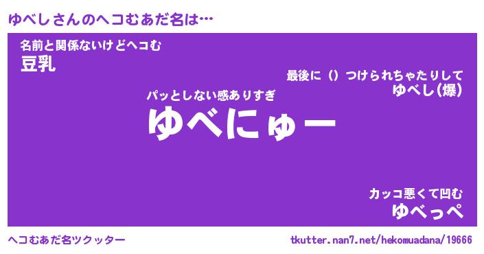 | ピコ太郎風あだ名 | 『ユコ史郎』『ピユ八郎』『ユベ太郎』 |