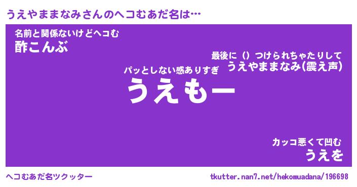 | 恥ずかしいあだ名 | 『プリティーうえやままなみ』『うえちん』 |