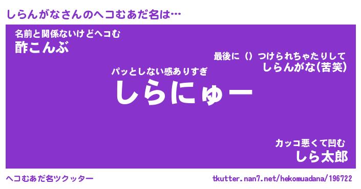 | 男性向けラノベタイトル風あだ名 | 『しらんがなの憂鬱』 |