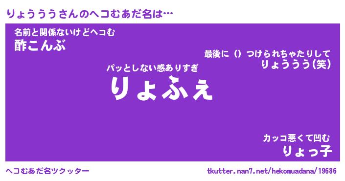 | ファンタジー風あだ名 | 『リョフェル』『エターナルリョウウウー』 |