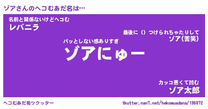 | 男性向けラノベタイトル風あだ名 | 『ゾアの憂鬱』 |