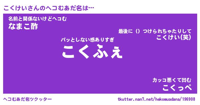 | ファンタジー風あだ名 | 『コクフェル』『エターナルコクケイー』 |